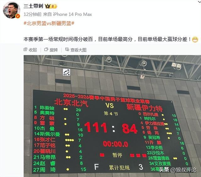 本场比赛,北京男篮轰111分创造新赛季改为40分钟之后的新高,而许利民坐拥豪华阵容,面对一支季后赛级别的球队能取得淋漓尽致的大胜,引发外界球迷和媒体的热议。